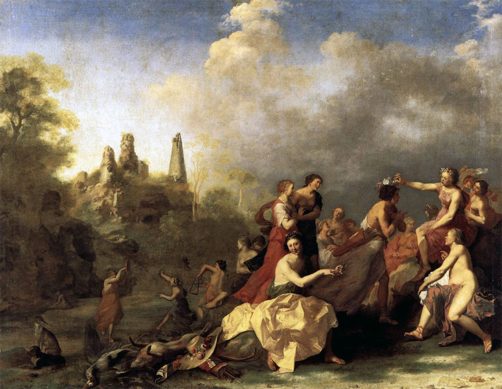 Cornelis van Poelenburgh. Amaryllis Giving Myrtill the Prize [det.], c1635.