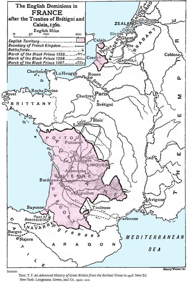 and Bretons. In 1369, on the pretext that Edward III had failed to observe the terms of the treaty of Bretigny, the King of France
