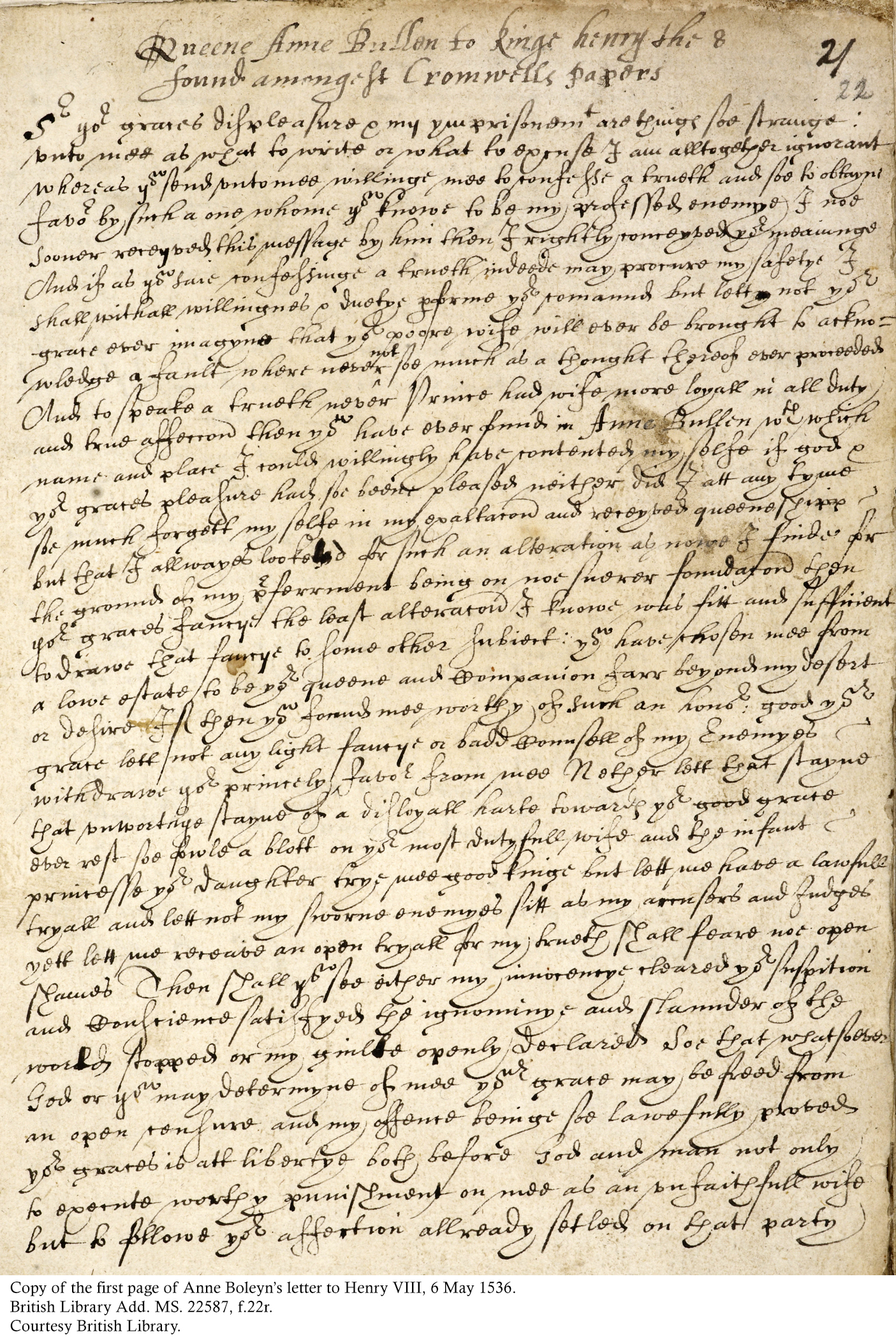 Boleyn, Anne. "Letter to King Henry VIII, 6 May, 1536."