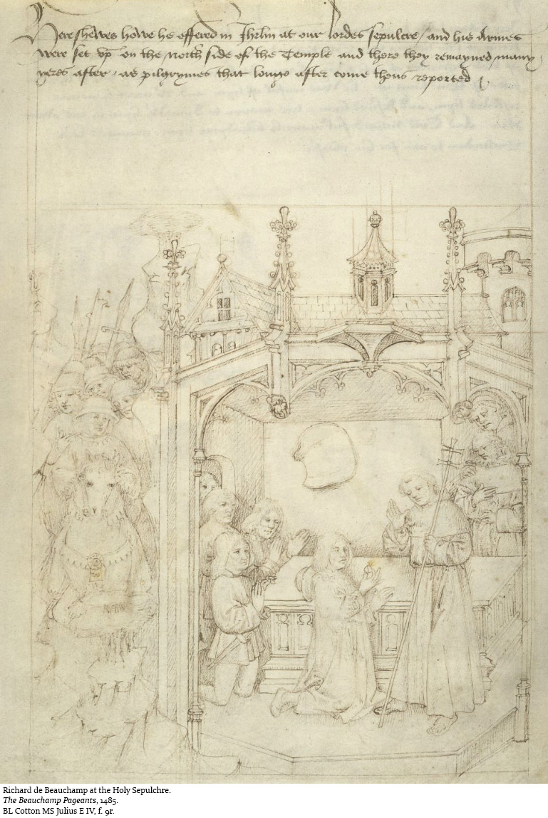 In 1408 he obtained leave of the king to visit the Holy Sepulchre. He crossed the Channel and first visited his kinsman, the