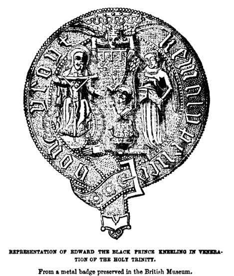 feathers and the motto 'Ich dien' from the king of Bohemia, who was slain in the battle of Crécy, it may be noted, first, as