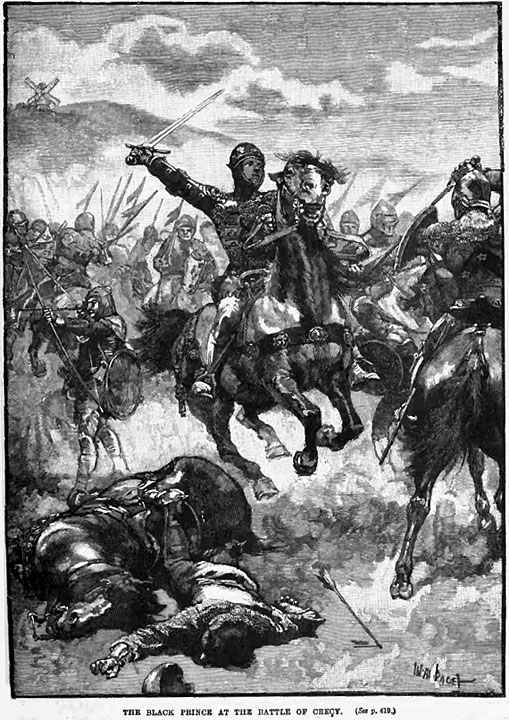 When the Genoese bowmen were discomfited and the front line of the French was in some disorder, the prince appears to have quitted his position in order to