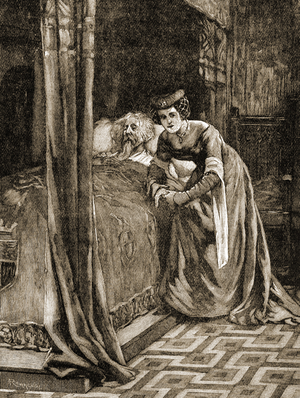 was now sinking into his dotage. After the death of Queen Philippa he fell entirely under the influence of a greedy mistress named Alice Perrers, while the