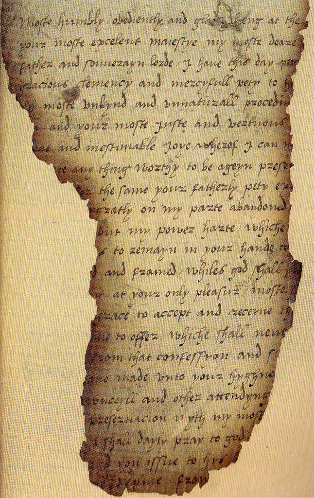Most humbly, obediently, and gladly lying at the feet of your most excellent majesty, my most dear and benign father and sovereign lord, I have this day perceived