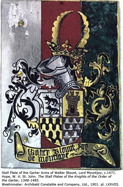 WALTER BLOUNT, first BARON MONTJOY or MOUNTJOY (d. 1474), Lord High Treasurer of England, eldest son of Sir Thomas Blount