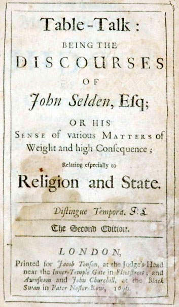 Title-page of Selden's Table-Talk, 2nd Ed. 1696