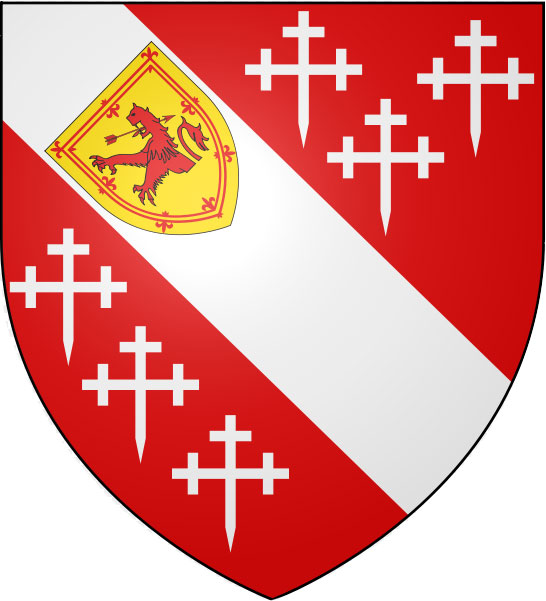addition to his coat of arms—on a bend in his shield a demi-lion, gules, pierced in the mouth with an arrow.