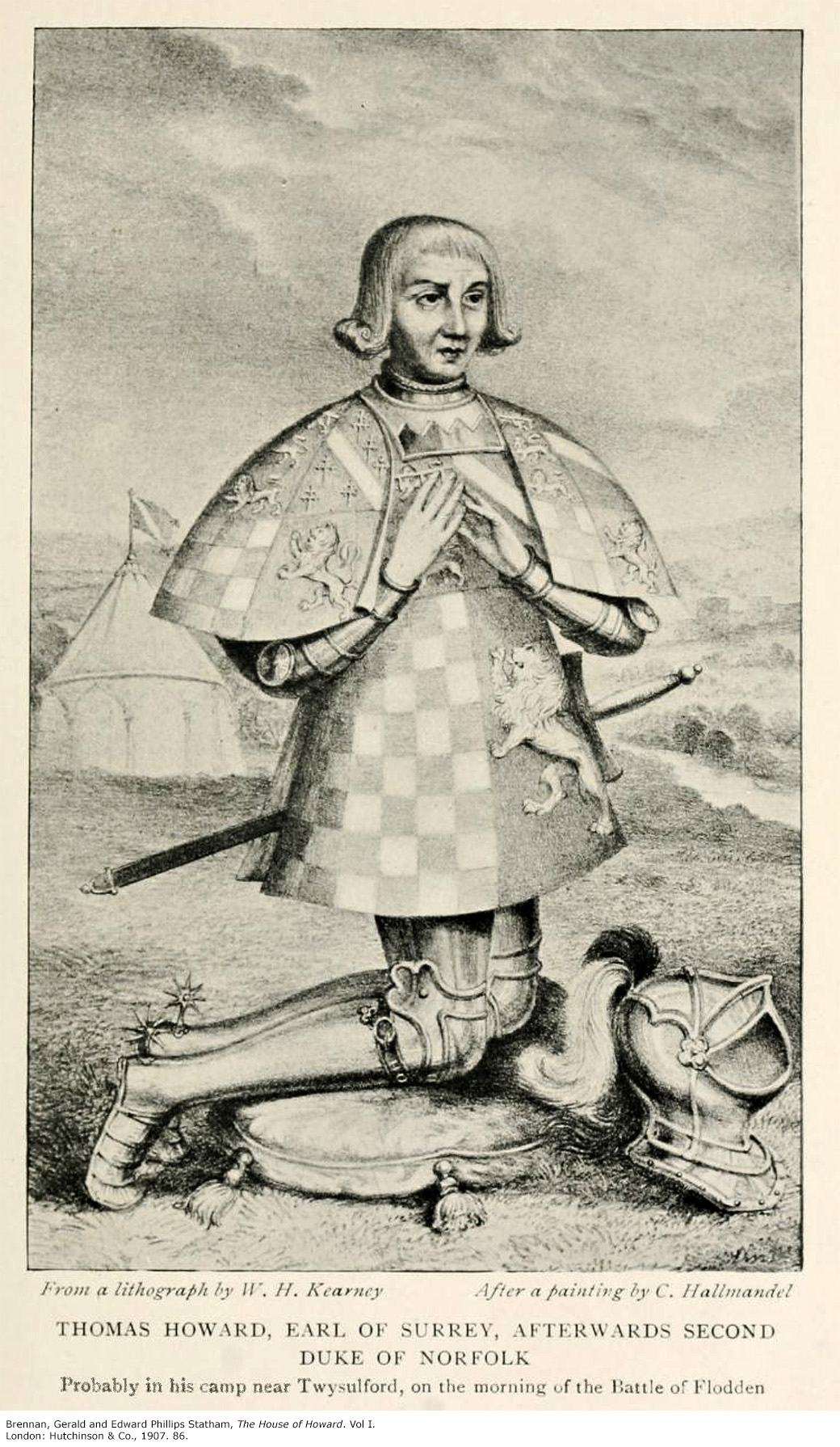 whereupon Howard's father, as next of kin, was created Duke of Norfolk, and his son Earl of Surrey. In the same year Surrey was made knight
