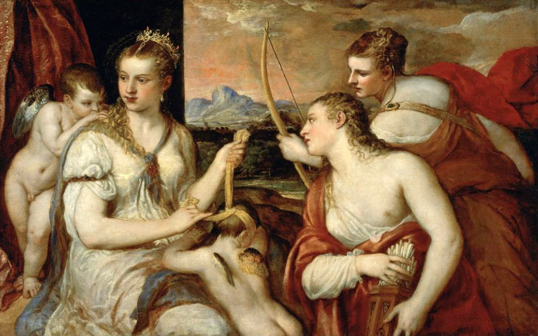 Venus Blindfolding Cupid. [detail] Titian. c.1565. Galleria Borghese, Rome.