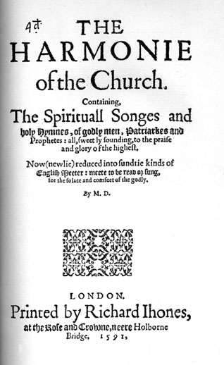 Title-page of The Harmonie of the Church (1591) [40k]