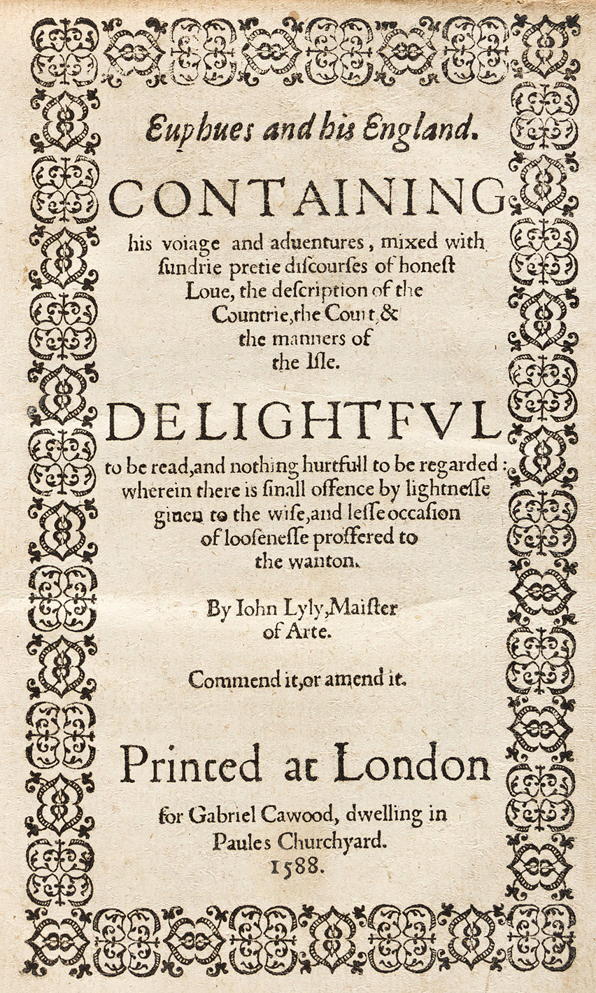 Title-page of the Dec. 1588 edition of Lyly's Euphues and his England
