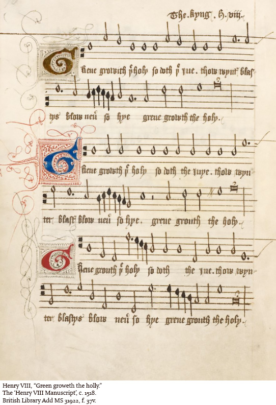 Sheet Music for "Green groweth the holly" (Original Manuscript, c.1518)