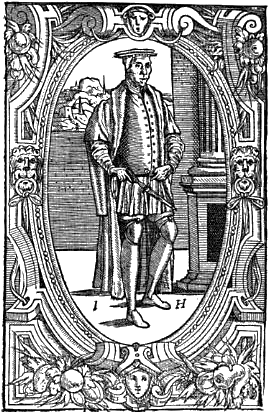 Top, Woodcut portrait of John Heywood from "Spider and the flie" (1556), Folger Shakespeare Library.