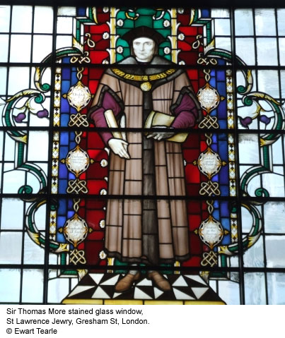If you have images of additional Thomas More stained glass windows, or if your photos are better than those currently on the site, we would be grateful if you would email them to anniina@luminarium.org.