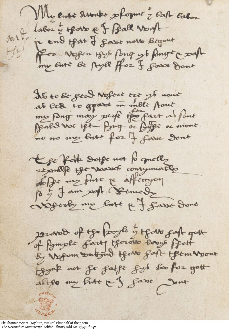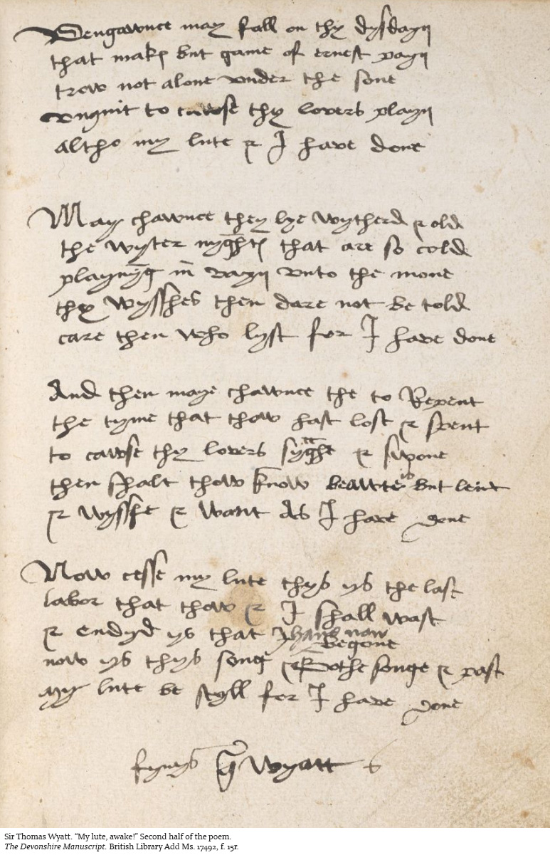 Sir Thomas Wyatt's own MS, and is signed with his name