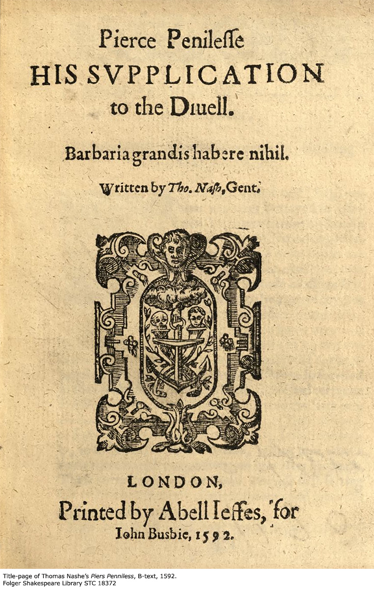 Pierce Penniless His Supplication to the Devil (1592)