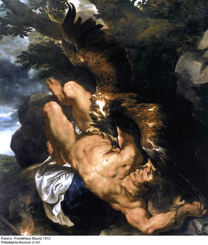 and brought it to mankind. As punishment, he was bound to a rock, and