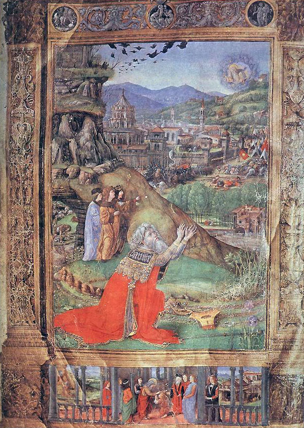 King David in Prayer. Florentine Bible, 1470s.
