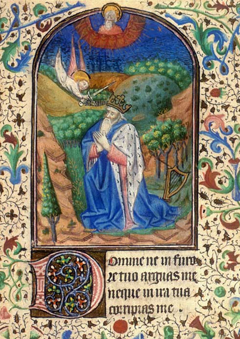 King David in Prayer. Glasgow Hours, f. 74r. c1460.