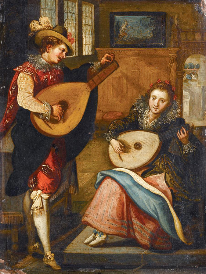 Lady and Gentleman Playing Lutes..