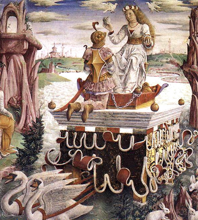 ![Francesco del Cossa. Allegory of April: Triumph of Venus [detail]. c.1470.](cossavenus2.jpg)