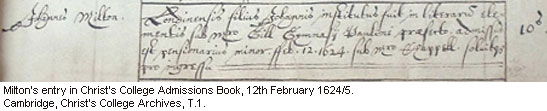 In 1625, Milton was admitted to Christ's College, Cambridge. While Milton was a hardworking student, he was also argumentative to the extent that only a year later, in 1626, he got suspended after a dispute with his tutor, William Chappell.
